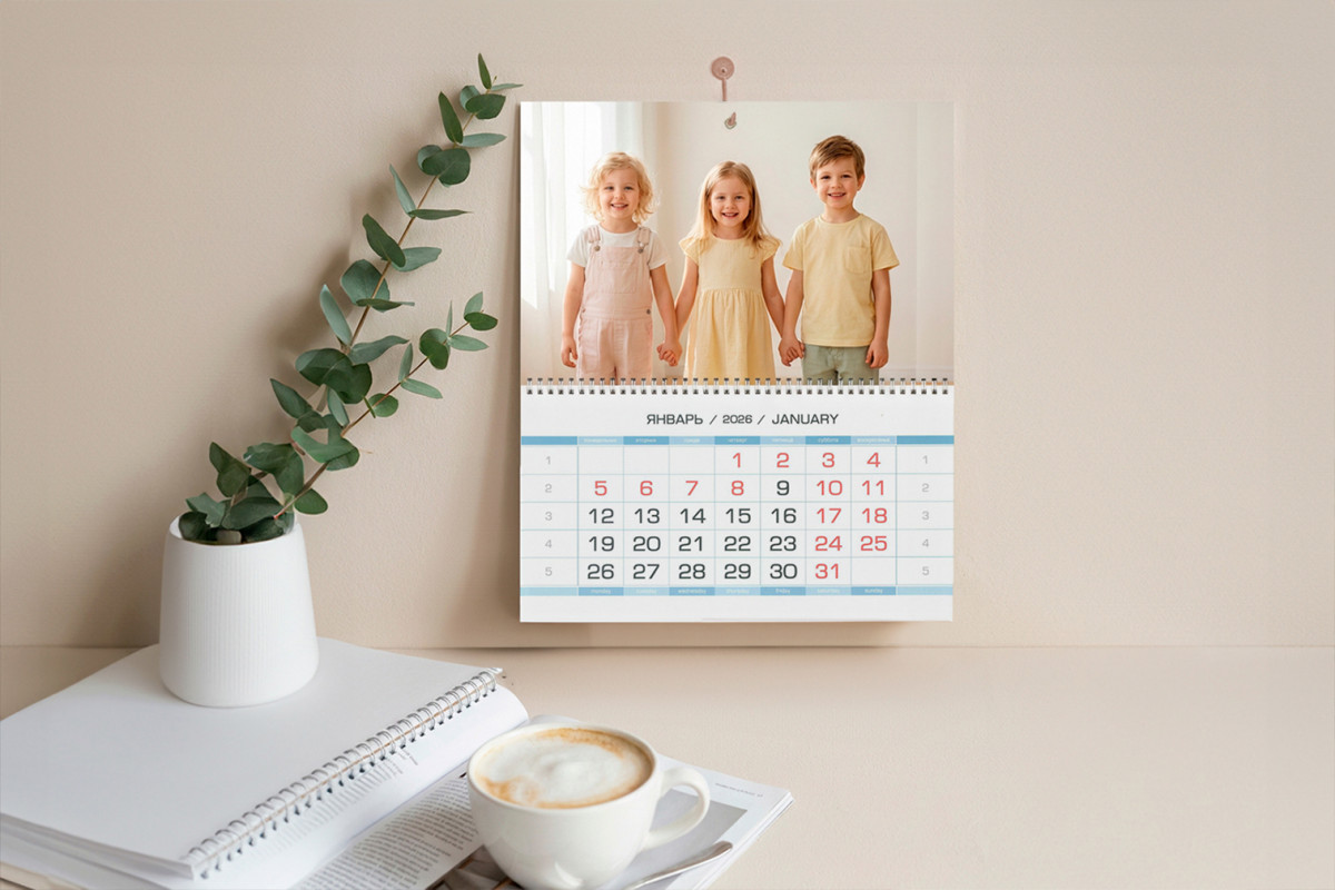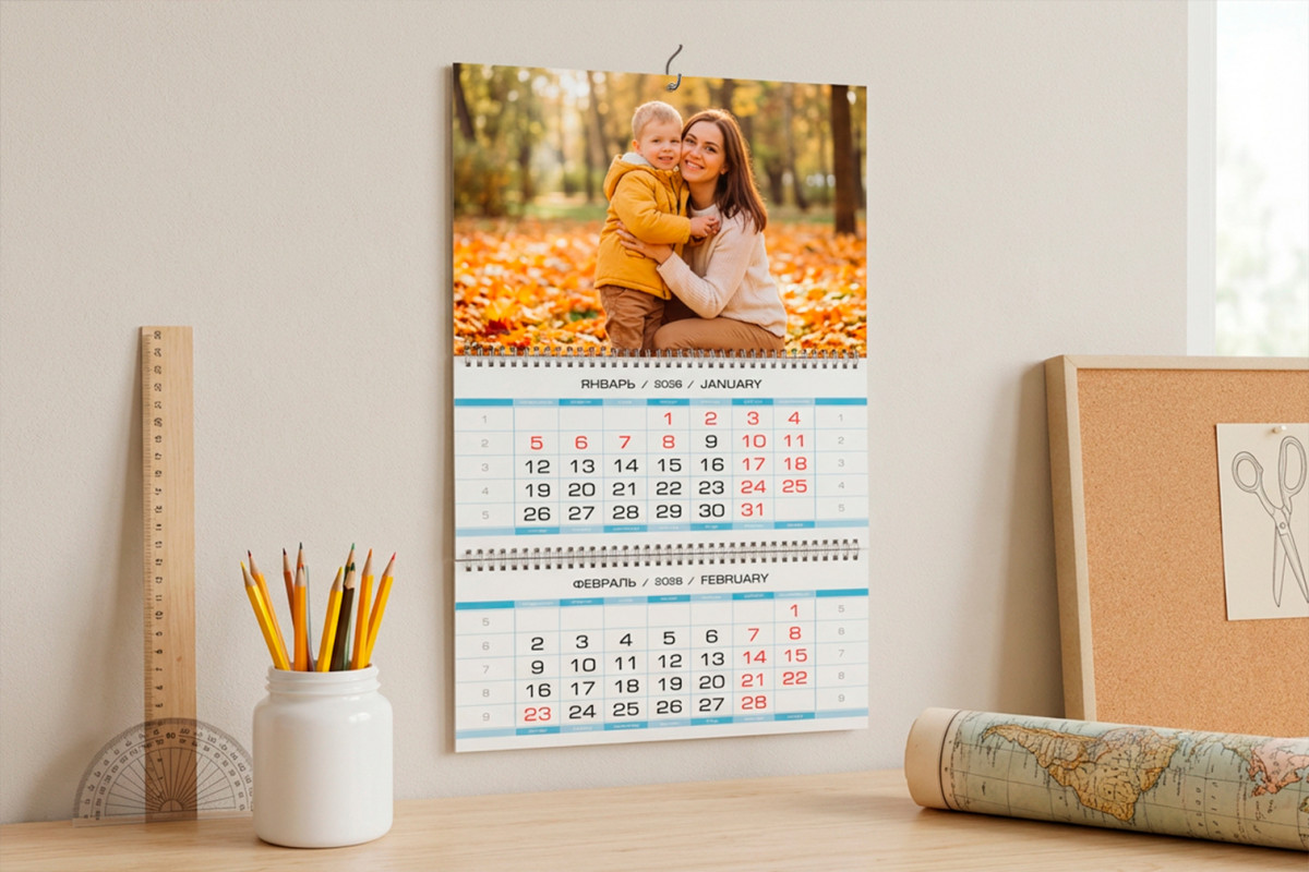 - Верхний фотоблок превращает календарь в стильный элемент интерьера;
